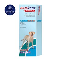Bravecto es un comprimido masticable que ofrece protección inmediata contra pulgas y garrapatas, eliminándolas en 8 horas para pulgas y 12 horas para garrapatas. Controla eficazmente las pulgas en el ambiente y puede utilizarse como tratamiento para la dermatitis alérgica por picadura de pulgas (DAPP). Se administra por vía oral, con una dosis cada 12 semanas para un control óptimo. Es seguro para perros Collie, hembras preñadas y lactantes. No usar en cachorros menores de 8 semanas ni en perros con hipersensibilidad al principio activo o antecedentes de convulsiones.